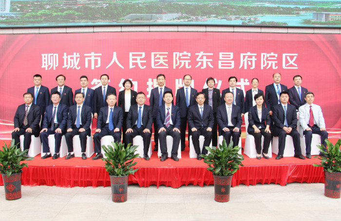 仪式上,东昌府区委副书记、区长刘培国代表东昌府区人民政府与聊城市人民医院党委副书记、院长王大伟签署了《全面托管聊城市东昌府人民医院协议书》,聊城市卫健委作为见证方,魏天山主任作为代表,也在协议书上进行了签字。聊城市卫健委党组书记、主任魏天山、东昌府区委书记荣红智、东昌府区委副书记、区长刘培国、聊城市人民医院党委书记马胜军、聊城市人民医院党委副书记、院长王大伟、东昌府区副区长郭海英一同为“聊城市人民医院东昌府院区”揭牌,标志着聊城市人民医院东昌府院区正式成立,两院加快了实质整合的步伐。