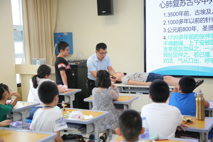 急诊科志愿者为孩子们现场演示心肺复苏术