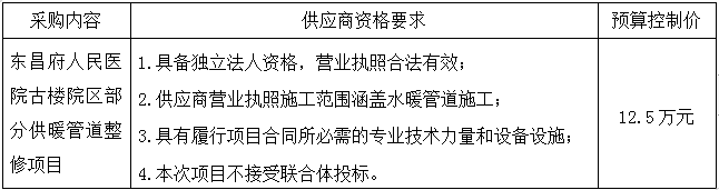 一、采购项目名称:聊城市东昌府人民医院古楼院区部分供暖管道整修项目
