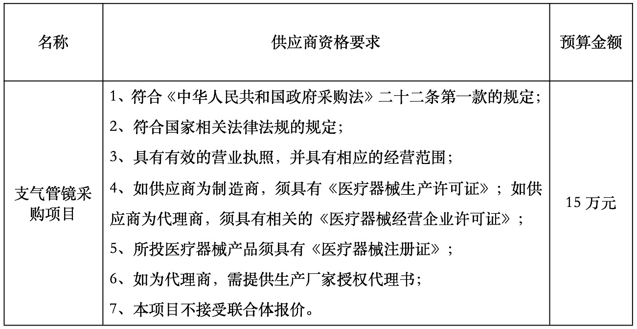 二、采购项目名称:聊城市东昌府人民医院支气管镜采购项目