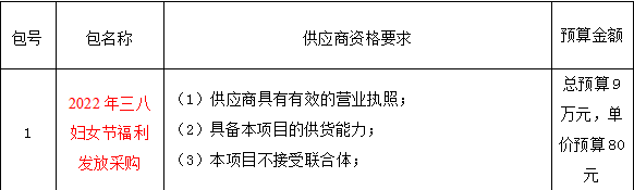 根据《中华人民共和国政府采购法》、《政府采购货物和服务招标投标管理办法》、《2021年度聊城市政府采购目录》、《聊城市东昌府人民医院招标投标管理办法》等有关规定,现对聊城市东昌府人民医院2022年三八妇女节福利发放采购项目发布采购公告,欢迎合格的供应商前来投标。