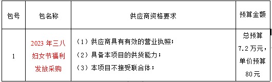 根据《中华人民共和国政府采购法》、《政府采购货物和服务招标投标管理办法》、《2022年度聊城市政府采购目录》、《聊城市东昌府人民医院招标投标管理办法》等有关规定,现对聊城市东昌府人民医院2023年三八妇女节福利发放采购项目发布采购公告,欢迎合格的供应商前来投标。