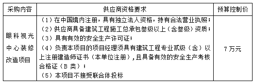 一、采购项目名称:聊城市东昌府人民医院眼科视光中心装修改造项目项目