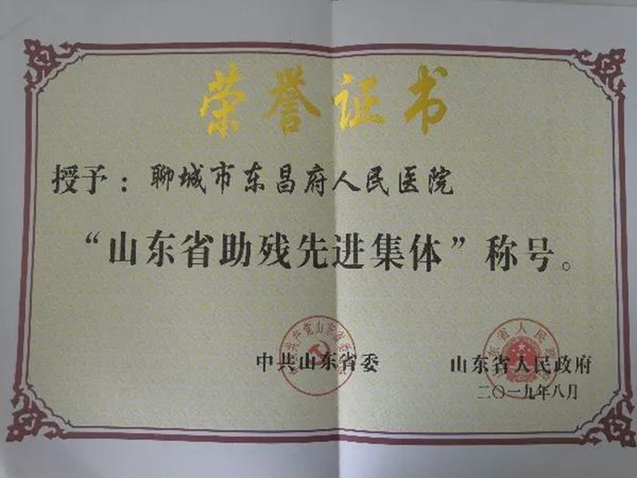 东昌府人民医院荣获“山东省助残先进集体“荣誉称号,全省仅40个集体荣获此称号,其中聊城只有3家单位入围。